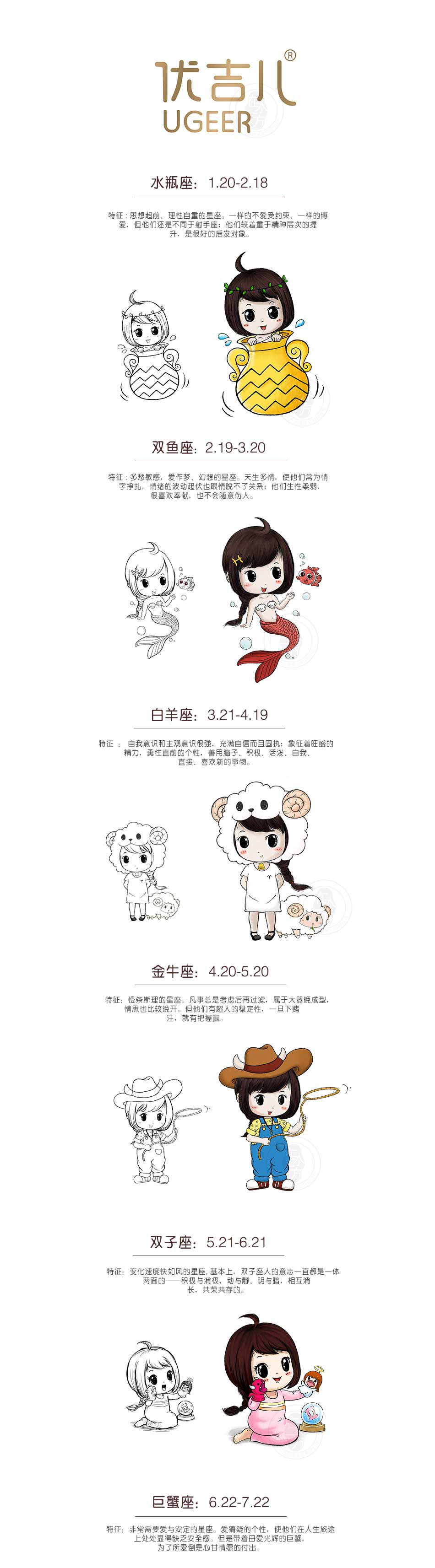 項(xiàng)目方案:優(yōu)吉兒品牌深挖個(gè)性特征,選擇從星座角度入手形成品牌認(rèn)知,豐富品牌文化內(nèi)涵的同時(shí),提煉出具有系統(tǒng)性及個(gè)性化的形象載體,凸顯品牌多元化特質(zhì),配套于渠道宣傳,有助于品牌知名度的提升。