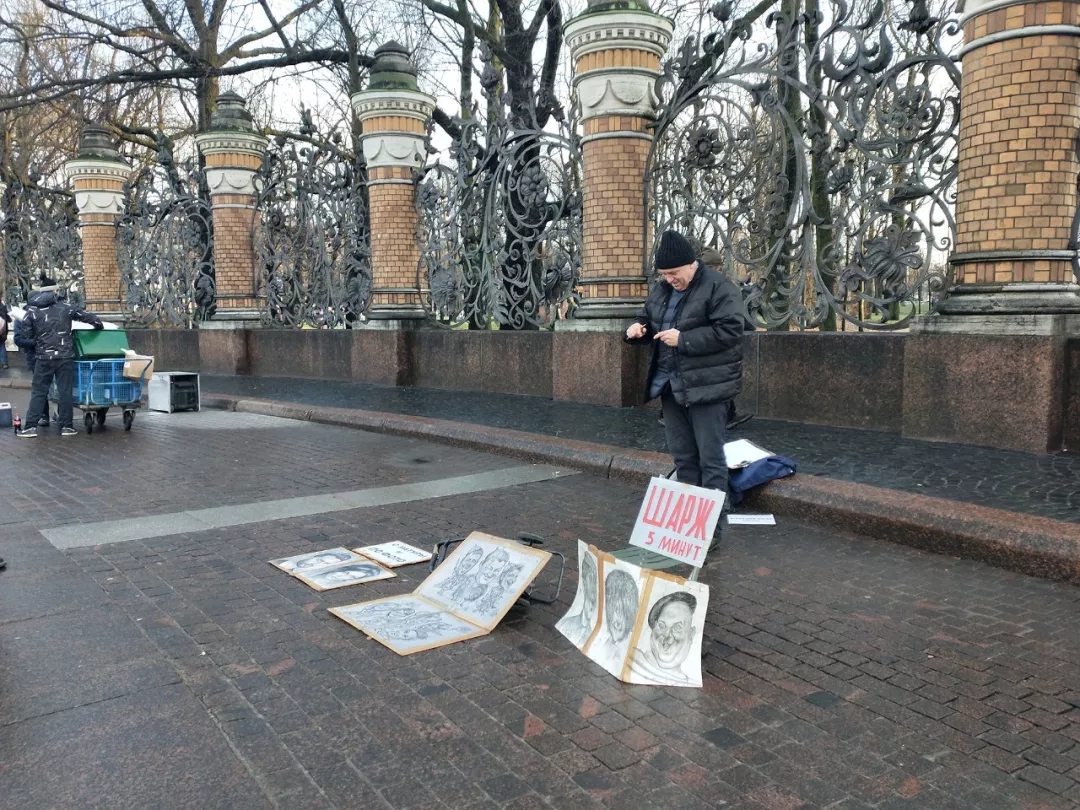 民間藝術(shù)家也開始了新的一天,用自己的畫作吸引過往游客的目光,美無國界,總有機(jī)會得到藝術(shù)愛好者的欣賞。
