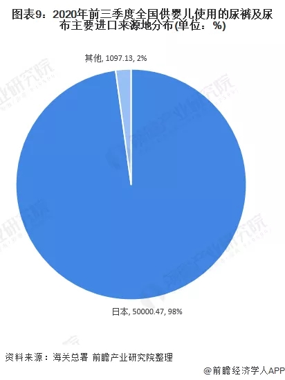 由于“供嬰兒使用的尿褲及尿布,任何材料制”占據(jù)主要比重,從我國主要進口此類一次性衛(wèi)生用品主要來源地看,我國絕大部分產(chǎn)品主要向日本進口,比例達到98%。