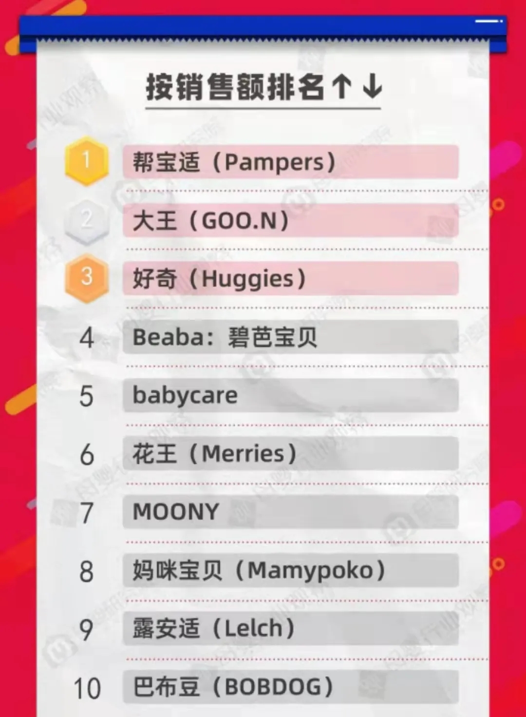 以上榜單是截止到今天早上9點,雙十一紙尿褲終極排名榜單晚上12點才會揭曉,最終榜單如何,大家拭目以待吧!