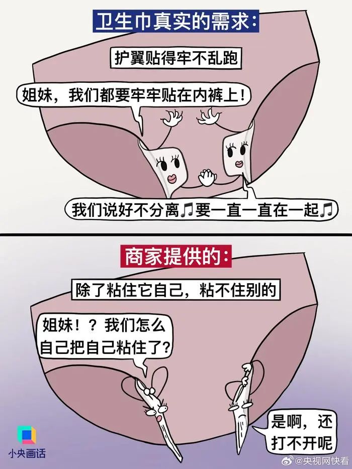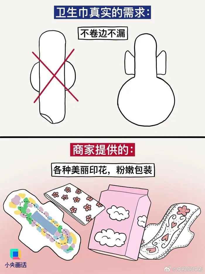 【#別拿消費(fèi)主義那套來(lái)做衛(wèi)生巾#】想不通,衛(wèi)生巾這種每個(gè)月都要用的東西,怎么會(huì)做得又貴又難用。商家以為我需要:加冰、加熱、加玻尿酸、粉嫩包裝、明星代言……實(shí)際我需要的:干凈衛(wèi)生、護(hù)翼好貼、安全不漏、價(jià)格適中。衛(wèi)生巾是日用品,別搞消費(fèi)主義輕奢那一套。(繪圖.阿彬的漫畫生活)#有種女性貧困叫月經(jīng)貧困#